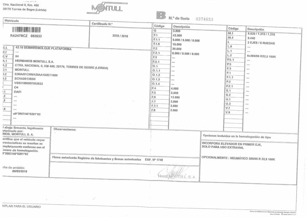 HERMANOS MONTULL S.A. (N.I.F A25041013) POR CTR NACIONAL CTRA NACIONAL II, KM, 450, 25170 TORRES DE SEGRE. (LLEIDA) POR AUTOVÍA A-2 SALIDA 446 O 447 Y AP-2 SALIDA 5 (SOSES/ ALCARRÀS)
